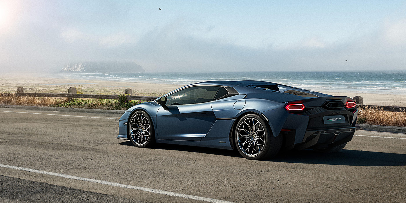 Ein unverkennbarer Charakter gepaart mit den kultigen Linien seiner Vorgänger – das ist der Temerario, der einen Meilenstein in der Designgeschichte von Lamborghini darstellt. Als neues Stilelement im Außenbereich strahlen die sechseckigen Tagfahrleuchten, die eine typische geometrische Form des Lamborghini-Designs aufgreifen und futuristisch interpretieren. Ebenso unverkennbar der freiliegende Motor, das Herzstück des Fahrzeugs, eingerahmt von einem neuen Spoiler, der neben seiner ästhetischen Funktion eine wichtige Rolle für die aerodynamische Effizienz spielt.